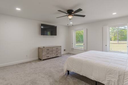 Escape to tranquility! Newly remodeled Spanish-style home on a quiet 4-acre lot in NE Columbia. Just 13 miles from Ft. Jackson, 5.5 miles to Village at Sandhills, and 2 miles from LMC-NE. Clean lines, tile floors, 1G Wi-Fi, streaming TVs in every room, and outdoor living space. Perfect for work and relaxation! Book your serene getaway now.